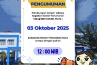 Kendal, Antaranews.com – 📢 Pengumuman Jam Pelayanan Sehubungan dengan adanya kegiatan Kantor Pertanahan Kabupaten Kendal, maka pada tanggal 3 Oktober 2025 pelayanan Kantor Pertanahan…