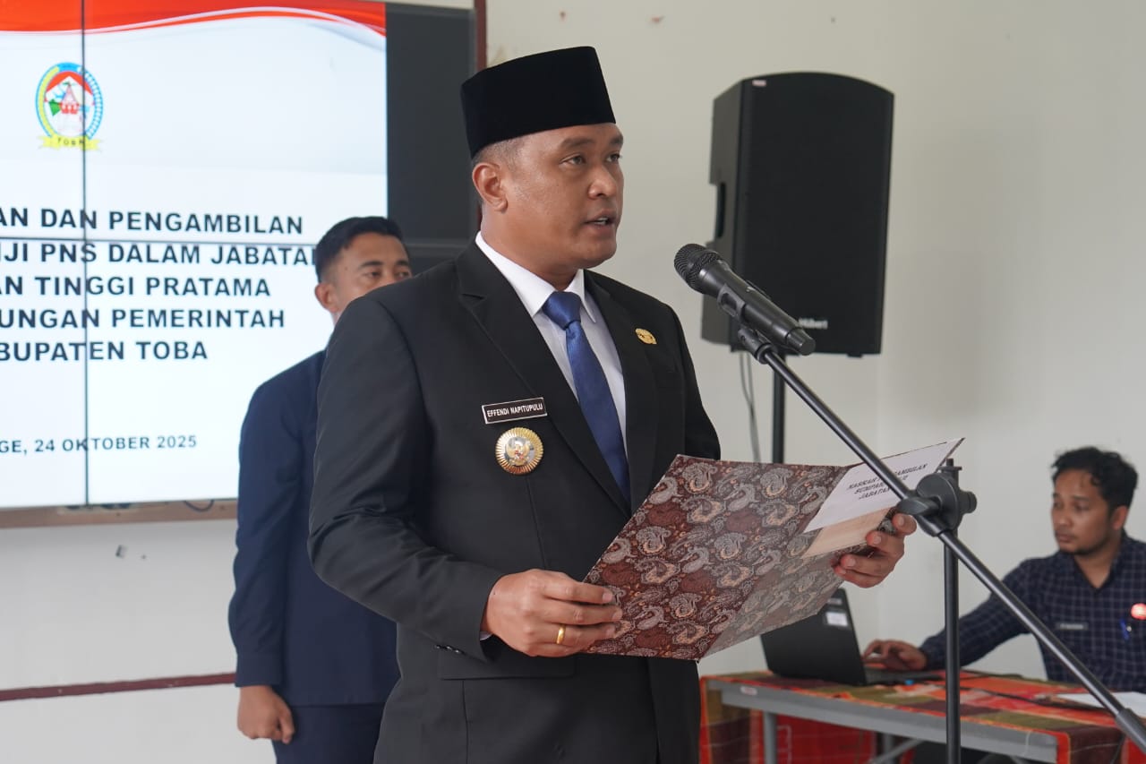TOBA, ANTARANEWS86.com__,Bupati Toba Effendi Sintong P. Napitupulu memimpin Pelantikan dan Pengambilan Sumpah/Jabatan PNS Dalam Jabatan Pimpinan Tinggi Pratama di Lingkungan Pemerintah Kabupaten Toba di ruang rapat Staf Ahli, Kantor Bupati Toba pada Jumat (24/10/2025) sore.