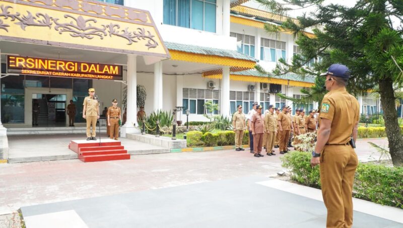 LANGKAT, ANTARANEWS86.com__,Bupati Langkat H. Syah Afandin, SH mendorong seluruh Aparatur Sipil Negara (ASN) agar tetap semangat menjalankan program-program prioritas meski dihadapkan pada kondisi efisiensi anggaran. Pesan itu disampaikan melalui Sekretaris Daerah Kabupaten Langkat, H. Amril, S.Sos., M.AP saat memimpin apel gabungan ASN di halaman Kantor Bupati Langkat, Senin (3/11/2025).
