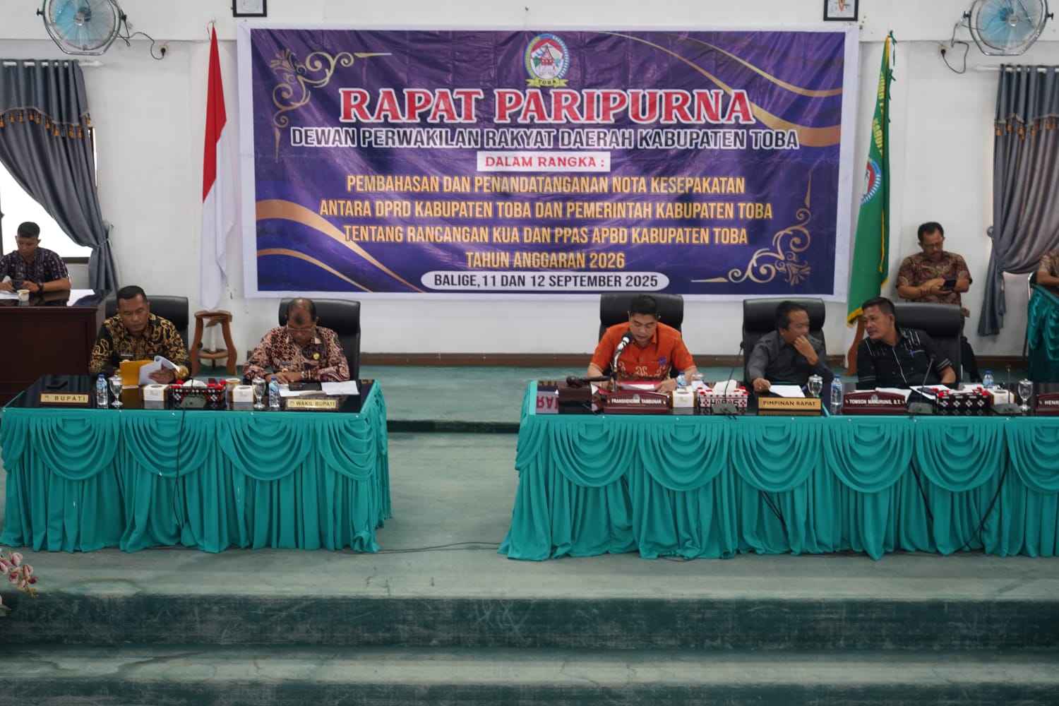 “Harapan kami semoga rancangan KUA dan rancangan PPAS APBD Kabupaten Toba Tahun Anggaran 2026 ini dapat disepakati bersama dengan tepat waktu, sesuai dengan ketentuan dan aturan yang berlaku,” ujar Bupati.