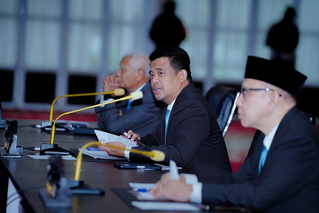 TAPUT (SUMUT) ANTARANEWS86.COM//Bupati Tapanuli Utara Dr. Jonius Taripar Parsaoran Hutabarat, S.Si, M.Si (JTP) didampingi Inspektur Daerah, Kadis Pertanian, Kadis Ketahanan Pangan, Kadis Koperasi, UKM, Perindustrian dan Perdagangan serta Kepala Bagian Perekonomian dan SDA Setdakab menghadiri High Level Meeting (HLM) Tim Pengendalian Inflasi Daerah (TPID) Provinsi Sumatera Utara dalam rangka ketersediaan pasokan dan stabilitas harga komoditas pangan pada Bulan Suci Ramadhan dan Idul Fitri 1446H yang dipimpin Gubernur Sumatera Utara Bapak Bobby Nasution bertempat di Aula Raja Inal Siregar Kantor Gubernur Sumatera Utara, Jumat (14/03/2025).