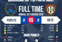 ANTARANEWS86.com_, MADINA, Laga sarat tensi tersaji pada Turnamen Sepak Bola Mahasiswa Cup I Se-Pantai Barat saat PSPS FC berhadapan dengan SN FC Simpang Bajole,…