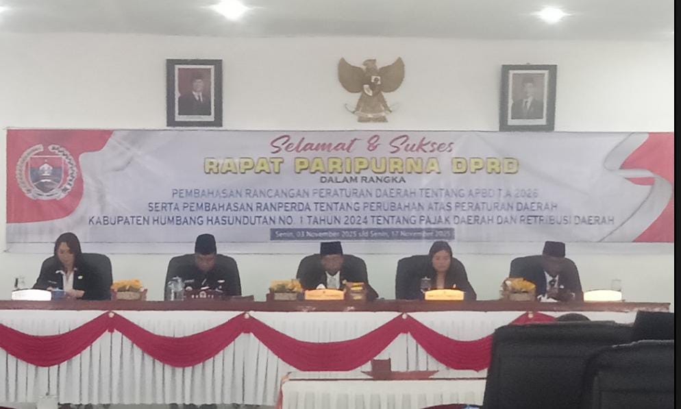 Penandatanganan dilaksanakan dalam Rapat Paripurna DPRD dengan agenda penyampaian pendapat akhir fraksi-fraksi dan penandatanganan berita acara persetujuan bersama, Senin (17/11/2026) di Ruang Paripurna DPRD Humbahas.