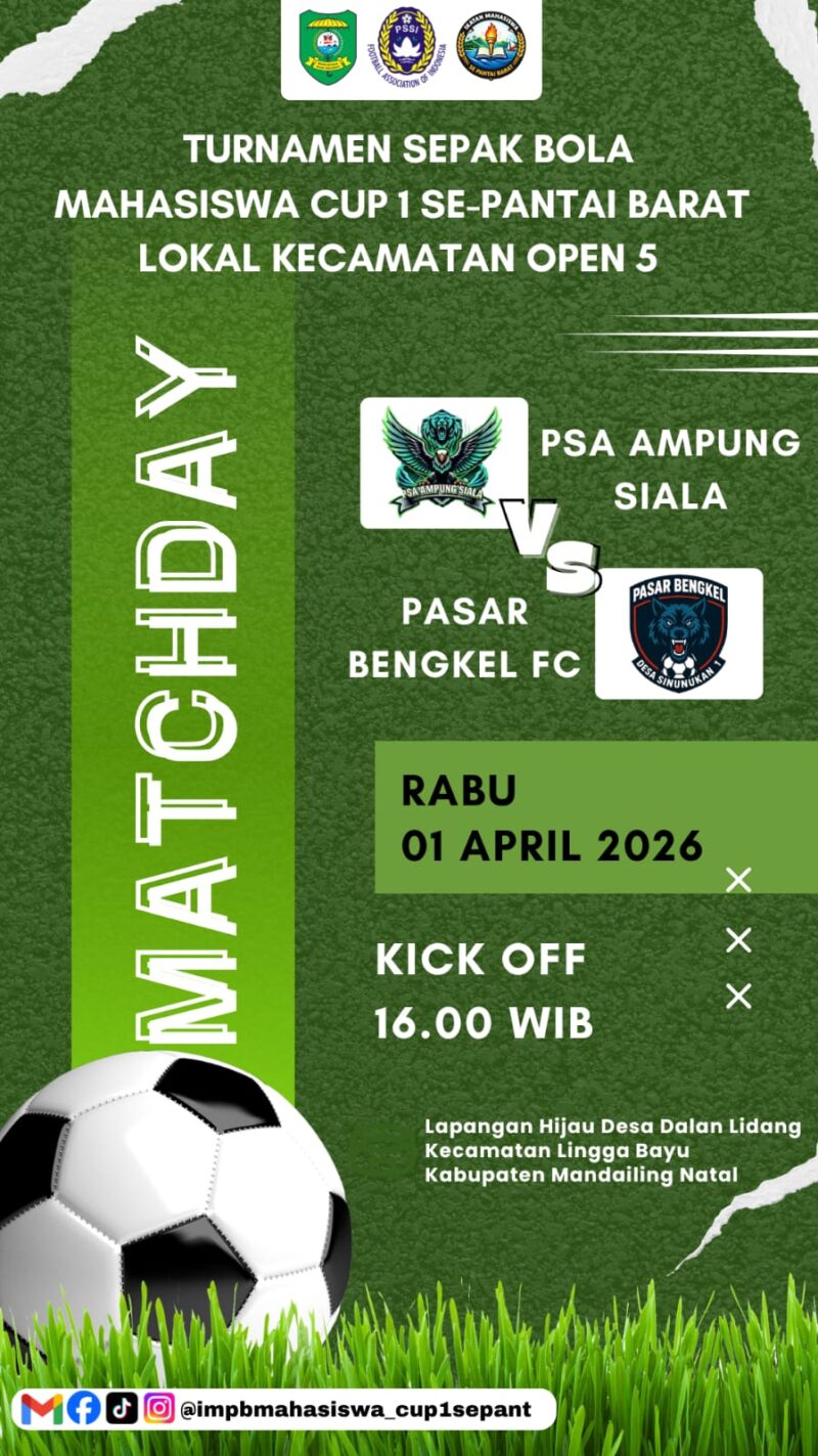 ANTARANEWS86.com_, MADINA, Atmosfer kompetisi dipastikan kembali memanas pada lanjutan Turnamen Sepak Bola Mahasiswa CUP I Se-Pantai Barat, saat PSA Ampung Siala akan berhadapan dengan Pasar Bengkel FC dalam laga yang diprediksi berlangsung sengit.