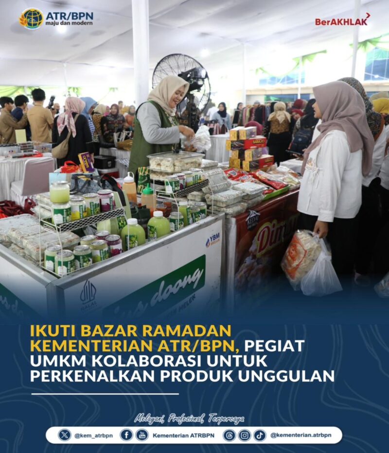 Antaranews86.com, Jakarta – Nuansa kebersamaan bulan Ramadan terasa kental di Kantor Kementerian Agraria dan Tata Ruang/Badan Pertanahan Nasional (ATR/BPN), Jakarta. Melalui Bazar Ramadan 1447 H yang diselenggarakan pada Kamis (05/03/2026), Kementerian ATR/BPN merangkul beragam pegiat Usaha Mikro, Kecil, dan Menengah (UMKM) sebagai bentuk kepedulian dan dukungan nyata terhadap ekonomi lokal. Asti, salah satu peserta Bazar Ramadan yang datang jauh-jauh dari Kabupaten Tangerang untuk memperkenalkan produk usaha unggulannya.