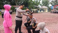 Kapolres Langkat Pimpin Upacara Kenaikan Pangkat Pengabdian Dan Pelepasan Personel Purna Tugas