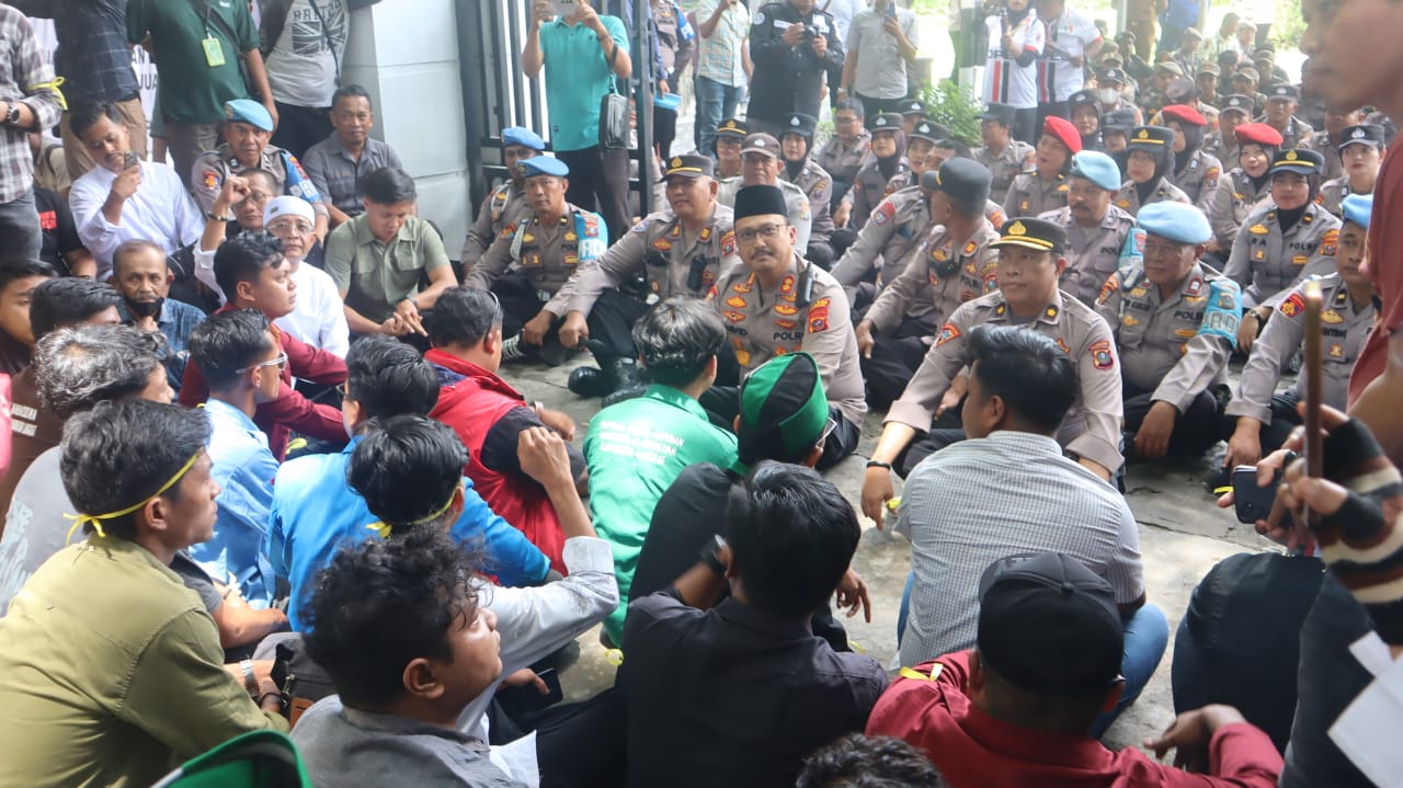 Aksi berlangsung tertib hingga Ketua DPRD Kabupaten Langkat, Sribana PA, bersama perwakilan fraksi DPRD turun langsung menemui massa aksi. Dialog terbuka di depan Kantor DPRD menghasilkan kesepakatan, ditandai dengan penandatanganan petisi sesuai aspirasi mahasiswa.