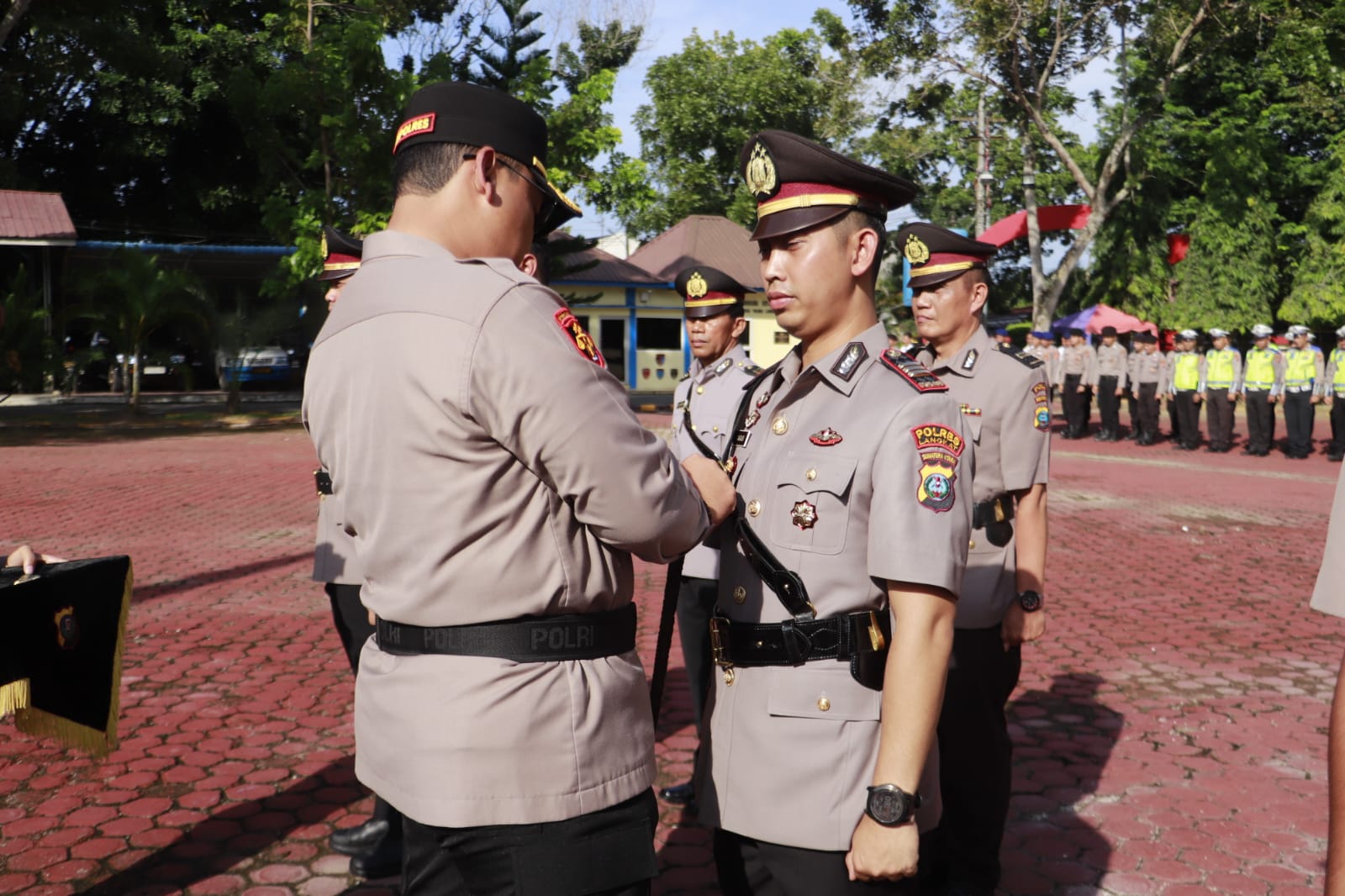 LANGKAT, ANTARANEWS86.com__,Kapolres Langkat AKBP David Triyo Prasojo SH SIK MSi memimpin Upacara Serah Terima Jabatan (Sertijab) Kasat Reskrim, Kapolsek Padang Tualang,Kapolsek Kuala,Kasat Tahti,Kasiwas dan Kasikum di Lapangan Jana Nuraga Mapolres Langkat, Senin (13/10/2025) pagi.
