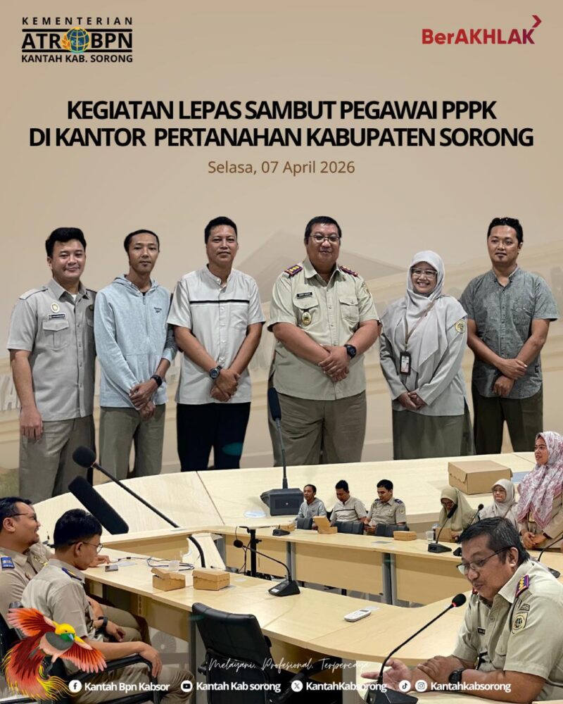 Dan selamat bergabung bagi rekan-rekan yang baru saja ditugaskan di Kantor Pertanahan Kabupaten Sorong. Mari bersama-sama memulai babak baru ini dengan penuh semangat dan kolaborasi yang solid!💪🔥