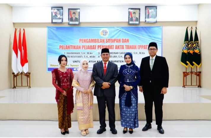 Antaranews86.com – Kepala Kantor Pertanahan Kabupaten Kendal Agung Taufik Hidayat melaksanakan Pengambilan Sumpah dan Pelantikan PPAT atas nama Rahmawan, Tri Noviyanti, Annisa Meinar Saraswati, dan Siti Chodijah di aula Kantor Pertanahan Kabupaten Kendal pada Rabu, 3 September 2025. Kegiatan ini dihadiri oleh seluruh Pejabat Pengawas dan Koordinator Kelompok Substansi serta tamu undangan. Selamat bagi yang dilantik dan selamat bertugas di Wilayah Kerja Kabupaten Kendal.