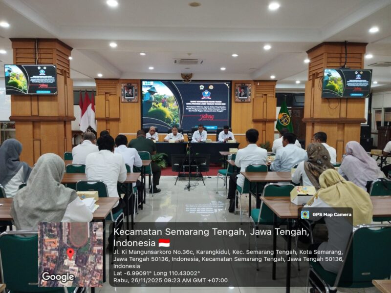 Rabu, 26 November 2025 – Seksi Penataan dan Pemberdayaan Kantor Pertanahan Kabupaten Kendal, diwakili oleh KKS Landreform dan Pemberdayaan Tanah Masyarakat, Ibu Ferria Cemerli menghadiri undangan Rapat Koordinasi Akhir Tahun Gugus Tugas Reforma Agraria (GTRA) Tahun 2025, bertempat di Aula Sentosa, Kantor wilayah BPN Provinsi Jawa Tengah. Kegiatan ini mengusung tema “Percepatan Reforma Agraria dalam Penyelesaian Konflik Penguasaan Tanah dalam Kawasan Hutan dan Tanah Negara lainnya di Jawa Tengah”