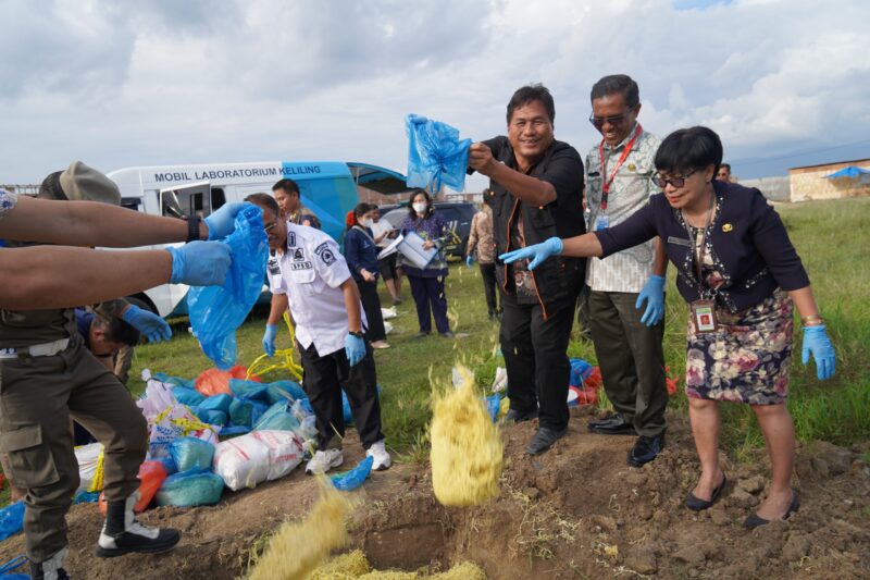 Balai Pengawas Obat dan Makanan (BPOM) melalui Loka POM Kabupaten Toba melakukan pemusnahan makanan yang terbukti mengandung bahan berbahaya formalin. Kegiatan pemusnahan ini berlangsung pada Kamis (21/8/2025) di Desa Tambunan Lumban Pea, Kecamatan Balige , Kabupaten Toba, dengan melibatkan sejumlah instansi terkait.