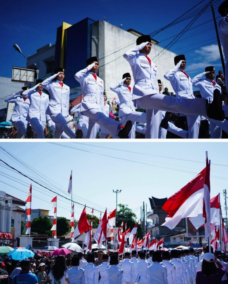 Kapolres Toba, AKBP Vinsensius Jimmy Parapaga, SH, S.I.K turut hadir pada acara pawai Karnaval HUT RI ke 80 beserta unsur Forkopimda Kabupaten Toba dan juga anggota DPRD Kabupaten Toba.