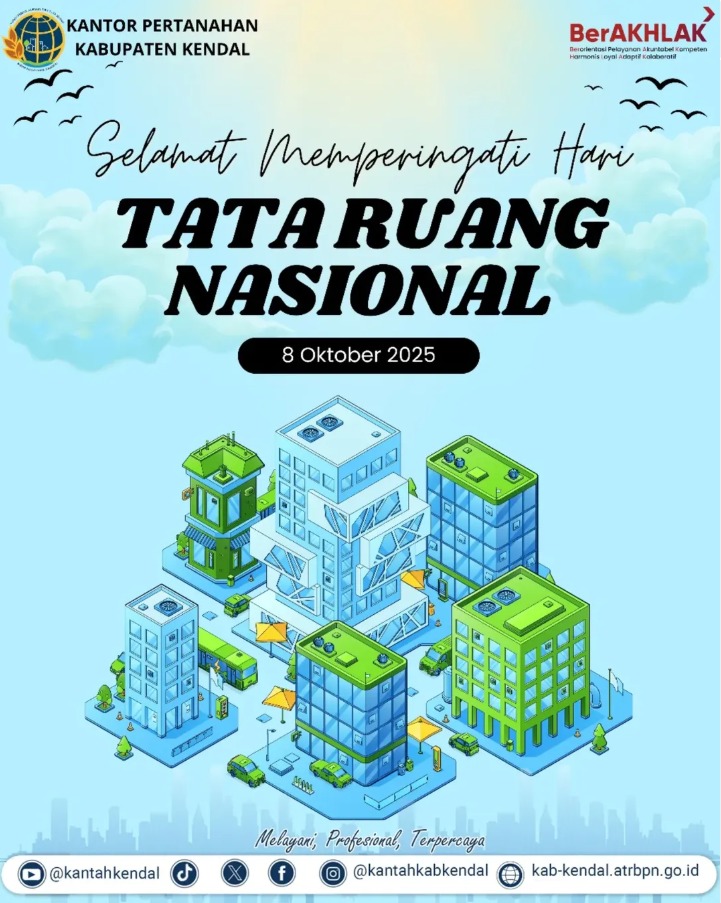 Kendal, Antaranews86.com – Segenap jajaran Kantor Pertanahan Kabupaten Kendal mengucapkan Selamat Memperingati Hari Tata Ruang Nasional 2025.