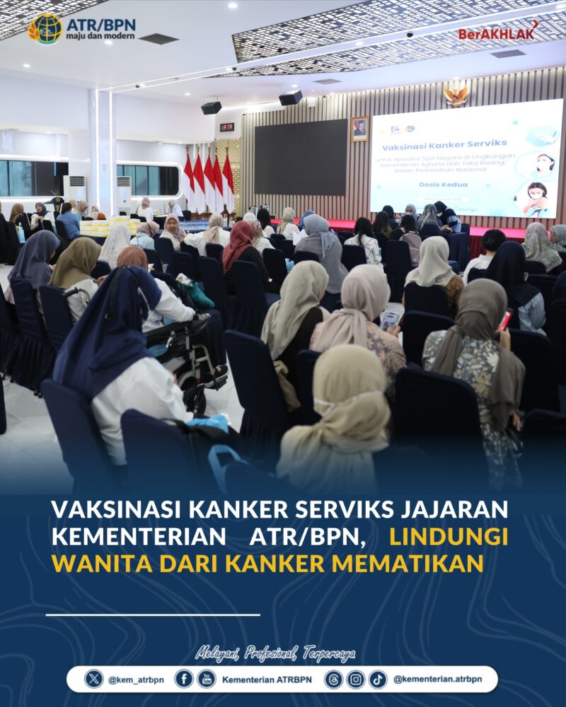Antaranews86.com, Jakarta – Kanker serviks adalah salah satu penyakit mematikan yang dapat menyerang perempuan. Untuk meningkatkan kesadaran sekaligus melindungi dari risiko terkena penyakit itu, Kementerian Agraria dan Tata Ruang/Badan Pertanahan Nasional (ATR/BPN) membuat program vaksinasi kanker serviks bagi jajarannya sejak awal 2026. Vaksinasi ini telah dinantikan oleh insan pertanahan di lingkungan Kementerian ATR/BPN.