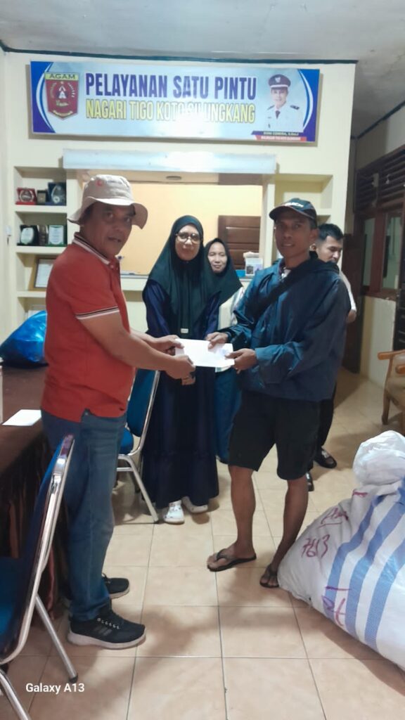 Bantuan akhirmya tesalurkan sebanyak 60 paket amplop uang berdasarkan data sangat membutuhkan dari Posko Nagari Tigo Koto Silungkang Kecamatan Palembayan Kabuoten Agam Sumatera Barat.